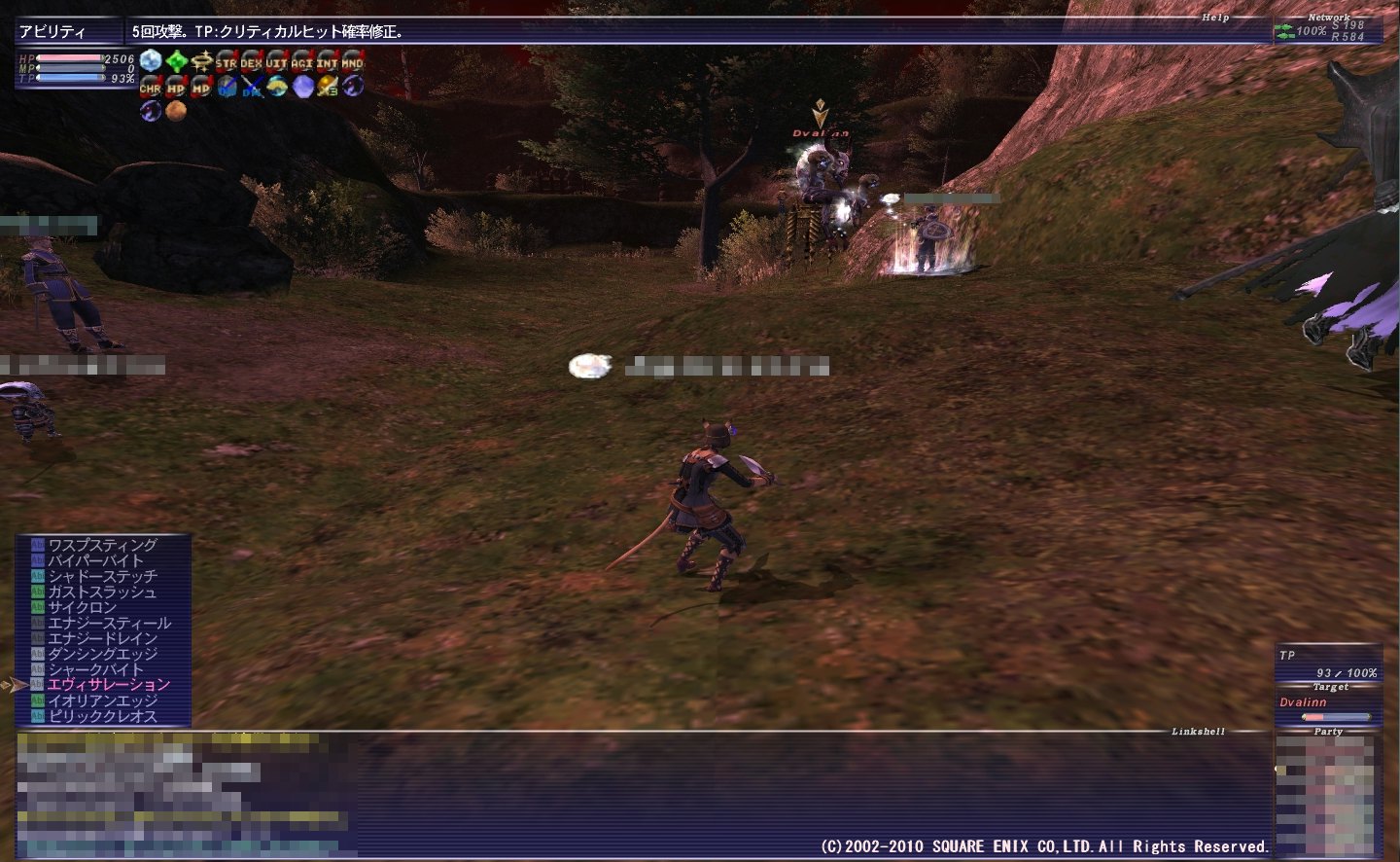キャップ解放でメリポが要求される可能性が高いですしね。 やったのはコンシュのキノコです。ブレスが痛いし状態異常うざいしで、 あんまやりやすくはないんですけど・・・。 ブガとかはトゥルルが乱入してくる可能性が高いのと、 紫霊芝で小銭も稼げるのでまぁいいかな~みたいなw ちなみにHP自体は低めなので、倒すのは早めです。 紫苑のアートマにオーリック強アテーメで戦闘してたんですが、 前衛が獣・青・わたしだけで、純粋なアタッカーがいなかったこともあり、 タゲがめっちゃ張り付いてすんごい厳しかった・・・。(ノ∀`) ヘイスト&ヘイストサンバ&ファイターロールが掛かってた事もあり、 ほぼ常に通常攻撃出してる感じ・・・。 モーションキャンセルもちらほらと。 3時間で200枚近く紙兵飛ぶとは思わなかった。ヽ(゜ー゜;)ノ 黄色も育てて、わたしのククルカントリガーがそろって、 フレのイヴトリガーが@1になったし、なかなか良かったですけどw 乱獲終了後は、180分ぐらい時間が余ってたので、 みんな適当に散らばって残業などw わたしはアラに入ったままではありますが、 誰の助けも借りずにカラマリにソロでリベンジしてきました。('∇') で、無事撃破。扇も5振りになったし、蝉がすぐ剥がされても、 大概は削られてない扇があるので楽勝。 ついでにヴァリャーグヘルムが出て、ちょうど欲しがってたフレも残業してたので、 フレがお持ち帰り。Ψ(`∀´)Ψ できればエナジードレインかサイクロンで赤が出てくれれば言うことなかったんですがw まぁリベンジは成功したし、ヴァリャーグも取れたのでもうやらないかな~。 アートマコンプ目的とかでやるかも、程度ですね。 残業で遊びすぎたので寝よう。(゜▽゜;)
