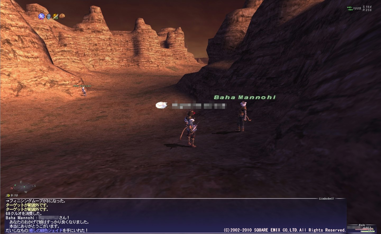 カリスネックレスが取れたので、今度は、アビセア-タロンギのクエ報酬で たまにもらえるという、オグメにワルツ回復量+つきのダンスシューズを狙ってみました。 新種確保!?というのがそれをもらえるクエなんですが、 受けるのにそこそこ名声が必要なため、まずは名声上げから。 タロンギは星の木の実回収と、職人魂1回しかやっておらず、名声は初期状態。 なので、まずは堅硬骨をさらに6回渡して、どこかで聞いたことが~にします。 (星の木の実&職人魂7回で名声1ランクアップ) 競売で安ければもう買って済ませちゃおうかと思ってましたが、 値段は安かったものの在庫がゼロ。(´Д⊂ しかたなく、つるはし5Dを持ってアダマンタス地帯西にある採掘ポイントへ。 採掘ポイント自体は狭い範囲にしか出ないので、さくさく掘れますが、 堅硬骨が出る確率はやや低めで、わりとつるはしも折れやすいです。 なので、5Dでも足りないかな~と思ってましたが、 予想に反して4Dと3本くらい使ったところで11個も取れちゃいました。('∇') 再オファーに再突入が必要なのがやや面倒ですが、 踊り子で行ってたのでジグと門使えば1分で1回クリア可能! これを6回繰り返してランクが上がったので、 次は残りの堅硬骨を渡しつつ、同じ西キャンプで受けられる、 飢えに備えてというクエも並行して進めます。こちらも再突入が必要。 このクエは、4門飛んだ先から東の崖にある木の、 崖の下にある根を調べて大事なものを注入。 その後、木の根元のポイントを調べてタロンギナッツを入手して、 クエを受けた相手に報告するだけ! ちなみに上の渡れる根から下の根をタゲれるので、 いちいち下の道いって上に上がって~ってしなくても大丈夫w で、この2つを2回ぐらいやると、マーテローの拡張が受けられるのでそれをクリア。 その後また2回ほど、職人魂と飢えに備えてをやればランクアップ。 この時点で、新種確保!?が受けられるようになったんだっけな。 ここまで来ると、5回クリアで癒しの緑色ジェイドがもらえる、 熱病の子を救っても受けられるので、さくっと5回クリア! (これも再オファーに再突入が必要です) そして、本命である新種確保!?を試しに1回。 アデニウム族でいいのかな?これをキャンプ地近くまで運ぶだけ! 被ダメも大した事ないし、回避装備で避けまくりなので超簡単です。 しかしピンクのマンドラ可愛いw クロリスがこれのデカイ版なので、一度見てみたいですね~。 で、報酬でもらえるダンスシューズなんですが。 ワルツ回復量+が付くこと自体がかなりレアで、 さらにそれが3%だと相当確率低いらしく。(4%も出るらしい?) なので、暇な時にしばらく通うことになるんだろうな~と思ってたら・・・。 1発で出た!(;°ロ°) なんだろ~・・・。なんか最近運がいいな・・・。((((;゜Д゜))) 4%はホントに都市伝説クラスに出ないらしいので、これでもう満足だったり! とはいえいきなり終わるのも寂しいので、ちょこちょこ4%目指してみようかな・・・。 ということで、長くなったので折りたたんでアートマ取り+おまけの分を! PR メンテがあったために早めに寝たら、5時ぐらいに目が覚めてしまったのと、