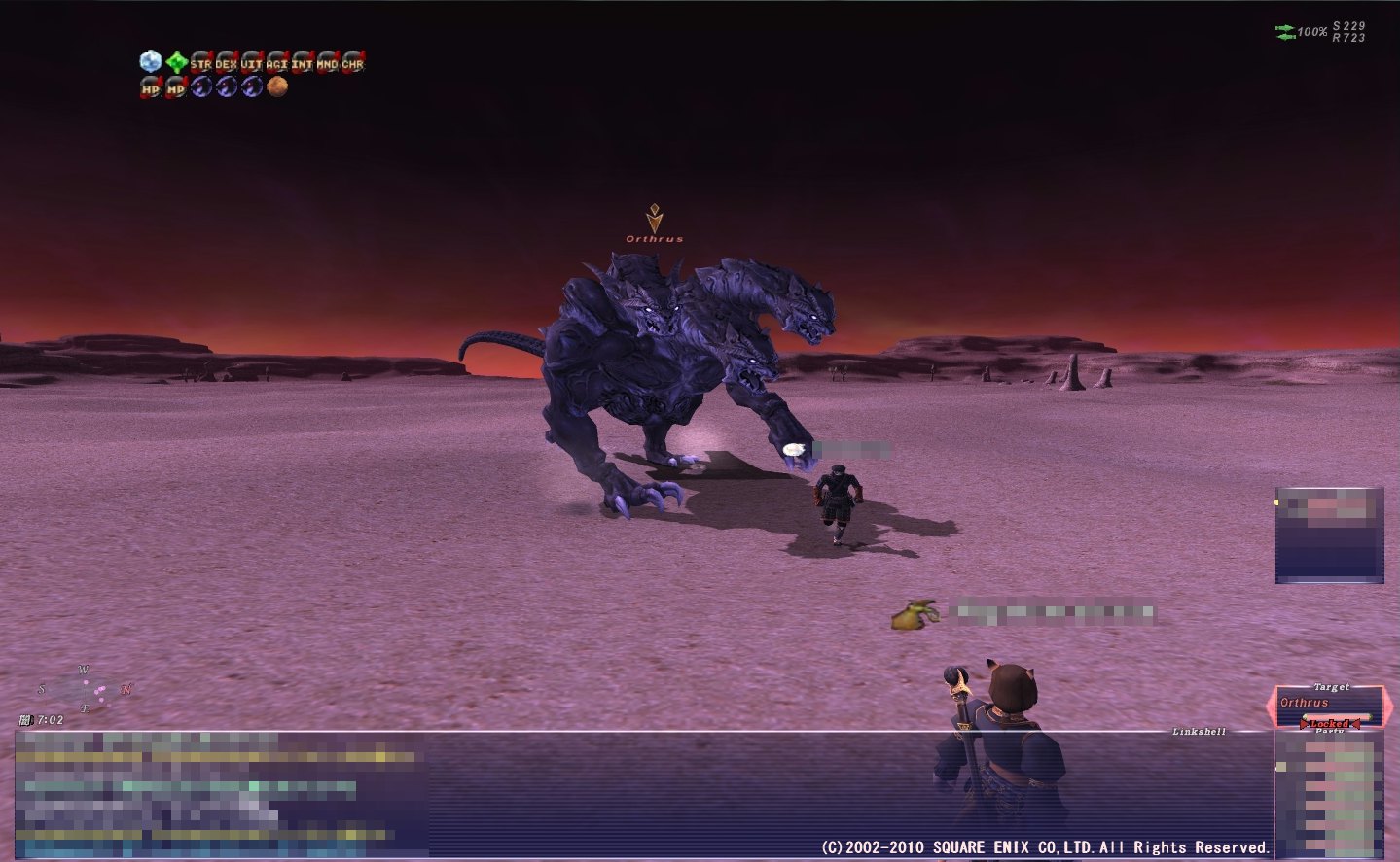 ケルベロスルートをやってきました! Amarok 虎王の毛皮、シャラブハの毛皮、上質なダルメル毛皮をトレードでPOP。 ゲーツオブハデス以外のケルベロス族の技に、火系魔法を使用。 後半になると上位の魔法を使うようになります。 火属性吸収あり。 特に痛い攻撃もないし、普通にやってれば勝てますw 一番の問題はトリガーの確保という・・・。(´д`) 2戦とも赤黄ついて、オルトロスのトリガーである灼熱のケルベロスの舌を2つゲット! 胴型紙の方は非常に渋く、カリスとクリードは2戦で1枚ずつでした。(´Д⊂ 続いて Orthrus こちらは序盤からゲーツオブハデスを使用。 火系魔法も同じように使用、後半になると上位魔法になるのも同じ。 HPが3割ぐらいから?オリジナル技のアケロンフレイムを使用。 これが範囲で1800ぐらいのダメ(シェルVあり)+バーンで、かなり痛いです。 しかもHP少なくなると、TP技の頻度が大幅に上がるので、 対策をしっかりしておかないと前衛が沈みかねません。 アケロンフレイム>ファイガIV>アケロンフレイムというコンボもあったような・・・。 TP関係ないのか、超ストアTPとかリゲインがつくのか・・・? 火属性吸収でTP+100とかはありそうに思えましたが、どうなんでしょう? とはいえ一度どんな特徴わかってしまえばさほど苦労せず。 2戦目はこいつ自身が出す蒼炎のアートマを使ったこともあり、楽勝でした! 戦利品は、オルトロスの爪が3個と、 マントもゲット!WS装備が強化されました!ヽ(´ー`)ノ 通常時もベレノスよりこっちでいい気もしないでもないですが・・・。 どうしようかなぁ。 そしてどちらもSS取り忘れましたが、Raniのトリガーのために、戦車と鉄巨人も。 戦車はホーミングミサイル、鉄巨人はバリスティクキックで、 一定の大ダメージとヘイトリセットがありますが、 逆に言うとそれしか鬱陶しいのがなく、こちらも弱いです。 鉄巨人は事前情報では結構強いと聞いてたので、 構成まで弄って挑んだのに、正直拍子抜けでしたw 野良だと、苦戦したりするらしいですね~。 下手に人数いる方が苦戦するのは、FFではよくあることですが! 赤弱点をついてるので会心のアートマに加え、トリガーも無事ゲット。 ということで次回Rani戦です!