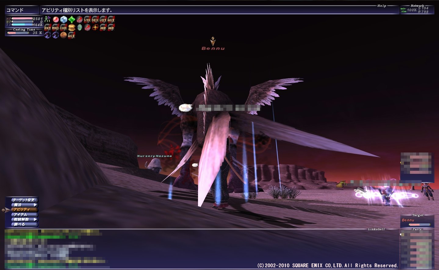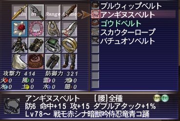 さっそくアルテパのロックNMと戦ってきました! Bennu ロックドミニオン?制圧率100%で出現する時間POPNMのOuzelumを、 攻略率100%にすることでI-8に???が出現。 その???に、Ouzelumから取れる大事なもの消費で出現・・・かな? 戦利品 スノーサシェ(RE) 【投てき】INT+2 耐氷+10 時々被氷属性ダメージ吸収 Lv90~ All Job オナーバウンド(RE) 【片手剣】D58 隔240 HP+35 神聖魔法スキル+7 エンライト効果アップ Lv89~ ナ 火行の小片(EX) (シ暗狩召コ) 火行の絵札(EX) (モ白獣竜学) 使用技