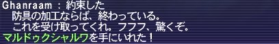 結構パゴいってるけどはじめてみたな~これ。 でも第1希望のメンツが休んでるときに限って出るって言う。 スカ足はポロポロ出てあまるくらいなんですがねぇ。 といっても今の固定になってからは1個も出てないですが・・・。 まぁ最近結構ドロップよくていいね! そういえば無影大王に続いて、今週は黒太子が起きているうちの鯖。 しかしこっちもスルー。 クーフリンは持ってるし、サッシュは欲しいけど移籍してまではな~。 最近だと多分、分配が多いと思うのでサッシュ分稼ごうと思うと 3回ぐらいはマント出ないとダメなのかな? まぁ仕事の関係上シャウトあるような時間にはインできないし、 日曜だとシュッシュオンラインだろうしなぁ。 まぁアライドリングは取れたのでカンパ関係は満足ですw ゼオルム戦線異常あり!! ついに、ついにスカ脚35ドロップ! というわけで、上の写メの通り、 フレイヤトラウザ・フレイトラウザ・ニョルドトラウザが揃いました。 これでスカディショウスが作れる・・・! シーフ装備の中では一番の問題だったブラボーサブリガから脱却ですよ! うあ~、これはマジでうれしい! しかもマル胴も同時ドロップとは・・・。 内容自体は、構成上わたしが詩人で出たんで、シーフは別の人だったんですが、 この人が再開時に新しく参加した面子だったために、シでゼオ初挑戦でして、 いろいろと【エキサイト】でしたw しかも、突入が闇曜日で、天乞いの後にスリプルバッシュできなかったって言う。 結局56NMまでしかやれなかったものの、結果よければすべてよし! 次回からはシで参加した子もうまくやれそうですし、いい経験になったかと。 もう希望装備的にしばらくゼオはいきそうもないですけどねw あ~、明日の出来上がりが【楽しみ】!