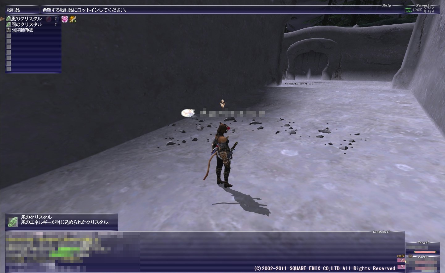 過去バスクエが栄誉と背反まで終わって、 ミッションが進められるようになったのでさっそくやってきました。 まぁ3国の中では一番愛着のないバスだけがクエが進んでいるというのは なんだかもがもがするけど、それはまぁおいといてw 囚われの迷宮で ボスディン氷河〔S〕(G-9)のRegal Pawprintsからレイヤーエリア。 攻略はWiki参照w ゴブ1匹倒すだけで、後は移動のみ。超簡単です。 ゴブはかなり回避高いんで精霊だけで沈めちゃう方が早いかな。 3系4発だか5発だかで沈みます。 殴りでも削るつもりでジュワだったけど、杖持って精霊のみのがきっと正解w 食事なしで全然攻撃当たらず・・・。 禁断の口 ボスディン氷河〔S〕(H-7)壁際にあるRegal Pawprintsからレイヤーエリア。 こっちもWiki参照してもらったほうが早いですが、 基本は攻撃をリリゼットにすべてまかせ、補佐とケアルのみ。 入ったらまずは自分に一通り強化&リリゼットにプロシェル。 あまり時間かけすぎると、ヒーリング中にリリゼットが先に動いて後々困るので、 詠唱長い&MP消費が多いリレイズはしなくてOK。不安なら呪符で。 エンチャントでも使った後の硬直が痛いです。 強化終わったらヒーリング。 MP回復し終わったら、ケットシーの後ろの壁に張り付いてそこからディア釣り。 これでケットシーとリリゼットをできるだけ壁際に引き寄せます。 とにかくこれが一番重要。 なんでかというと、戦闘中にケットシーがアトモスを呼び出すんですが、 壁際で戦えていると、このアトモスが反応せずになにもしてこなくなるのです。 こいつが動き出してしまうと、 強烈なステダウン&ケットシーに強烈なステアップが付与され、一気に苦しくなります。 分かりやすい例を挙げると、ケアル4の回復量が200とか下がるほどにキツイ。 位置はこのSSを参考に。そこまで壁に張り付いてなくても大丈夫です。 端の方が一段高くなってますが、そこより壁よりならOKという感じでしょうかね。 後はリリゼットのヘイストを切らさないことと、 弱体(特にパライズ)を切らさずに入れてれば勝てます。 敵のWSで状態異常全部回復されてしまいますが、その都度入れなおすこと。 MPがやばそうならスロウやディアは削ってもOK。 パライズは1でもある程度のステブーがあればかなり麻痺率が高く、 頻繁に使ってくる古代やガ系を潰してくれるので、 どれだけ消されまくろうが、入れなおす方が結果的にMP効率はよくなります。 ケアルの数が大幅に減りますからね~。相当楽です。 あと、MPはちょっときつめなので、余裕あるときはこまめにヒーリング。 ちょっと座らずに様子を見たいときはバミクロなど、少しでも節約を。 そうしてればコンバした後MP使い切る前に倒せます。 ちなみにわたしは、薬品どころか食事すらなしでOKでした~。 コツさえつかめば難易度は低いBFなので、赤ある人で未クリアなら是非挑戦をw その他雑記。 ・メイジャン 短剣のNo2、内ホルトトのウェポンNM3回達成。 ・・・しかし、最終のHNM素材10個のマゾさに、ちょっと停滞中w 知り合い多いわけでもないしキャップ開放して~でないと、取れる気がしない! ・おでん、アレキ 大事なものはゲット。おでんは報酬いいの多いので早くやりたいものの、 なかなかシャウトがあるタイミングと合わず・・・。 ヨヨルンチェックでぶちきれそうになったのは内緒。 あれ必要なの?マジで・・・。 ・姫の暗黒37に。 クマスタン解禁!なんか裏氷河のボス2垢でクマスタンしなきゃいけないらしい・・・。 なんとかかってザルカ行きたいけど難しそうだなぁ。 きましたね~。