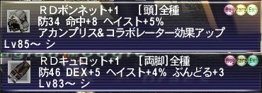 ・赤く光ったら全員で背中を向けて何もしない事ですぐに解除される。 ・通常攻撃に追加ダメあり。 アビスブラストがシェルなしで700~1000ぐらい食らうので、 連発されると簡単に死ねますが・・・。 敵のTP技は、敵のTPが増えた時に発動判定なので、 蝉で回避できていれば・・・つまり、被弾で敵のTPを増やさなければ、 こちらの攻撃直後にしか来ません。 なので、赤く光ったのが見えたら後ろを向くことで100%単発に出来ます。ъ(`ー゜) 通常攻撃は十分に回避可能なので、連発モードにさえさせなければさほど強くありません。 不死の油のドロップがあまりよくないようなので、できれば競売で持込を推奨です。 後は、???が敵のど真ん中なので、わかして引っ張るのが面倒ですね。 一応スニかけてタンダバ装備で殴られずに安全地帯まで引っ張れましたが・・・。 途中で殴られてスニ切れると危ないので、パウダー使ったほうがいいかも。 だいじなものと詩型紙狙いでしたがドロップゼロ。o(`ω´*)o 戦闘時間は灰燼&紫苑で20分弱ぐらいだったかな? 後はぼちぼちとシ装備も作ってます。 後は足かぁ・・・。それよりは先に詩人AF+1作るべきか。 +2にした時のコンビ効果がすごいんですよね~、詩人・・・。 おまけ 誰も上げてすらいない暗型紙5枚同時ドロップとか まじぱねぇっす!(ノ ゜Д゜)ノ == ┻━┻ 回避装備をなんとなくまとめ。