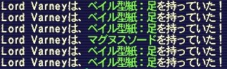 ・周辺の雑魚を少し強くした程度の強さ。 ・移動速度が速く、種族特性で通常攻撃にHP吸収がある。 ・有効:スロウ、パライズ、ポイズン ・無効:バインド、グラビデ、スリプル ・吸血ムチは連発してくる(3連発固定?) 攻撃は問題なくよけるし、臭い息が鬱陶しいだけで弱かったです。('∇') アトルガンエリアのアムルタートみたいに、 強化がある場合はヴァンピリックルートしか使わないのならば さらに楽だったんですけど・・・。 そもそもヴァンピリックルート自体がないというw まぁ弱いといっても、息自体に400前後のダメがあるのと、 麻痺静寂でどうしても回復できずに連続で被弾なんかもあるので、 TP考えなしに使ってると危ない場面もあるかも、です。 というわけで撃破。 戦闘時間は灰燼凶角で15分かかってないぐらい。 十分早く倒せてはいますが、 素直に後衛誰かに頼んだほうがいいのは間違いないところw 当初の目的だっただいじなものは、SS見ての通り無事にゲット。ъ(`ー゜) 近いうちにイヴやりたいところですが・・・。 あんまり人数いなくても倒せるし、LSでやれるかな~? 主催はしたことないし、なかなか勇気がでないという。>< ユーサーパーもトリガー作って結局やってないし、こっちもやりたいな。 Gaizkin