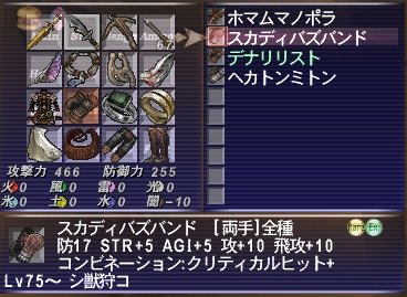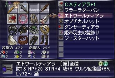 回避特化装備で十分避けるので、自爆とファイガに気をつけていればOK! スタッターを維持していても、Vフラで何回かスタンさせると 累積耐性でスタンが通らなくなるので、過信は禁物ですね。 アートマは紫苑&灰燼で戦闘時間は15分ぐらい? ファイガ・自爆で体力が大きく凹むので、 魔法&TP技を使われた直後&FMがある状態でしかWS撃ってません。 もうちょい攻められる気もしますが・・・。それで死んだら間抜けですしねw LSメンで灰燼取れてないのがいるので、だいじなもの狙いだったんですが、 残念ながら大事なものは出ず。というかドロップなにもなし!ヽ(`Д´)ノ どうも死闘エリアでは赤弱点でジェイド&だいじなものも ドロップ率が上がるようなので、サイクロンとエナドレは撃ったんですけどね~。 さすがにこの2種類だけでは運がよくないと弱点つけないですねw 暇なときに見かけたらまた倒したいと思います。ъ(`ー゜) んでもって、今日は久々の裏バスで エトワールティアラを(σ´∀`)σ 後はラウンデルピアスが欲しいけど・・・。 BCやれる機会はもう来そうにないし、バザーでは高いし、流石に無理そう。 そういえば、85初の4国だったんですが、めっちゃ簡単になってました!w 誇張でもなんでもなく、適当に釣って大リンクしても、 1回のプガの間に数匹削れるので、なんら問題なく・・・。 数がこなせると、ドロップの期待はできるので気分的に楽ですね~。 もっとも、かつてないペースで敵倒しまくったのに、 100が一枚も出ませんでしたが!(´д`) 安くなったウーツ鉱はボロボロ出たのになぁ・・・。 なにはともあれ、裏もまだ欲しいのがいくつかあるし、 ちょこちょことは行きたいな~。 スカディバズバンド完成! いろいろ調べた感じ、WS装備としてはヘカトンと誤差、 むしろヘカのがダメが伸びることもあるぐらいな感じらしいので、 ほかの人の希望取るついでに出ればいいか~程度だったんですが・・・。 まさかほんとにぽろっと出るとは。('∇') なんというか、惜しい性能ですね~。 AGIじゃなくて、DEXついてればヘカよりは安定してダメがあがったかも? 使い分けかなぁ・・・。 しかし、最近サルベのドロップが好調です。 この前はマル足35が出たし、今回はスカ手に加えてスカ足35も出たし、 さっきはボスのドロップも欲しい人がいるのが出たし!ъ(`ー゜) 全員の第1希望をもうすぐ取り終わりそうだし、いったん終わる日も近いかも? とはいえ、サルベ装備、この前のVUでID振り替えられてるようなので、 これが防具メイジャンの為だとすると、またやることになるかも、ですがw
