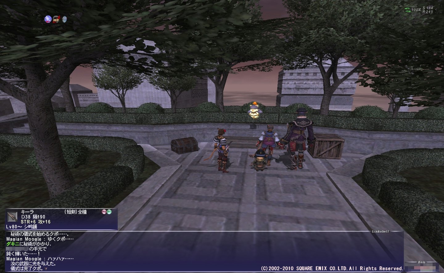 ある程度FF11をやってるプレイヤーなら誰しもが思ったはず・・・! こんなユーザーライクな調整をするなんてFF11じゃない!とw いやほんと今までの調整とは何だったのか・・・ってレベルなんですが! これも松井さん効果なのかな~。【よくやった!】 松井さんにツィートしてみたら返事来てた!(;°ロ°) サルベ装束の踊学への解放は、過去何回か検討されたものの見送ったとのこと。>< 状況が変わってきたので再検討の余地はありますね~と言ってくれてるので、 それに期待ですね。(*'-') 主にスカ足が・・・。踊り子にも移動速度アップ装備欲しいw AF3につけられるとかないかなぁ・・・。それなら見た目もばっちりなんだけど。 PR チュクワの卵終了。 倒されることも多いNMだけに、安いバザーがそこそこあるので、 それさえ見つけられれば楽に揃いますね。 クエレブレはサチコに書いたり知り合いから聞いたりで、 安めになんとか6個ぐらいは買えましたが・・・。 まだまだ先は長い!(;´∀`) ヴルパングエ2戦目。 前回の経験上赤がいるなら踊り子である必要がなかったので、 シで行ってトレハンをぺたぺた。 しかしシルフィードエペっていう微妙武器とトリガーのみでした。>< ちなみに踊り子ならソロ楽勝だと思われます。 そして、タイタンNMがいつまでたっても 真価の緑色ジェイドを落としてくれないので、 放置してたアビセアコンシュのクエをこなして、 真価の青色ジェイドを先にとることにしてみましたw 上のSSは名声上げに欠かせないライブラコレクション。 コンシュの名声上げはかなりだるいと聞いてましたが、 写真撮り貯めて、ヴァナ日付変わる前後で2枚渡しと、 ある程度名声上げれば受けられる、マーテロー拡張を平行してこなせば、 全然苦もなく上がりますね~。 たまたま途中でアンフィプテレやってるアラがいたので、 ちょっと失礼してアビセアの鷹用の写真もパシャリと。 紫霊芝は身内の乱獲でキノコやったときに 6個取れた&他のメンバーから安く3個買えたので、 あまりお金もかからなかったし、よかったです。('∇') そんなこんなでふと気づけばコンシュのジェイドとクエはコンプしてました。 といっても、所詮もらえるのはクルオですけどw 他のところもコンプしたいけど、ラテはジェイドが面倒だし、 タロンギはクエもジェイドも面倒っていう・・・。(´д`) アートマは3箇所ともコンプとか面倒すぎるw アートマ集めるの、面白いのは面白いですけどねぇ。 とりあえず今後のことを考えると、真価の緑色ジェイドは取っておきたいな~。 リーフベルを取るために金魚すくいをするの図。 SSで見るとよさげかな~と思ったけど、いざ取ってみると微妙? 個人的にはバスの風鈴が一番好みかな~。 サンドのはまだ取ってませんけど! そんな感じで特に何もなくだらだらと。 回避短剣2本目はモルボルをせっせと撃破中です。 踊り子、早くメリポも装備も完成させたいけど・・・。 色々と悩みどころが多くて困ります。 1、メリポ 剣1 扇1 ノーフット3 Cポジ5 の予定だったものの、ウルドのディスペルやカラマリの被弾などから、 Cポジ削って扇に振るべきじゃないか?という気になってきました。 ソロだと、常時命中回避が上がるのは確かに便利なんですが・・・。 今は各種キーラなんかのおかげで、命中や回避は補えるんじゃないかと。 カラマリに関してはCポジ5ならもう少し蝉が回ったという可能性もありますが・・・。 削られてない扇がある時の安心感はやっぱりすごいんですよね~。 中途半端な感はありますが、剣1以外全部3というのもアリかな~とか思ってます。 う~ん、悩ましい。 2、装備 現状のヘイスト装備だと、1ターンでTP10たまらないのがちょっと気になってきました。 99で止まるのが結構目に付くんですよね~。 ヘイスト極力落とさずに得TP10にできないかと装備を考えてみたら、 投てきにホワイトタスラム、首に剣侠でなんとか・・・という感じに。 しかしホワイトタスラムは高すぎるし微妙です。 他の選択肢としては、STPフセットという手もあるのですが・・・。 DPSも悪くないし、これはこれでいいかな?という気もしますが、 今後ここからの派生がどうなるかが読みにくいのが困りもの。 DA or 複数回パラゾで攻撃回数自体を増やすというのもひとつの手ですが、 こちらも難易度が高いし今後の派生が・・・。 スカ脚装備できれば1発なんだけどな~。 もっとも、今はちょっと全体的な装備を見直しして、 格下相手のソロではフルオロールにするようにしたので、この場合は問題なし。 サポ白で自己ヘイストする時ぐらいですかね~、これが気になるのは。 PTでやる時は、WS即撃ちよりもTP余らせつつ、 サポートすることの方が多いから、STPをあんまり気にしても意味ないし、 そもそも支援ありなのに、装備ヘイスト落とす方が大問題ですし。 というわけで、この件はあんまり考えなくてもいいのかな。(´∇`) ただ、フルオロールは、手を抜いてると思われてそうで、 その点でのみちょっと抵抗
