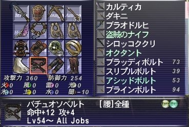 戦闘中のSS取り忘れた>< ちょこちょことブログにも書いてる通り、姫のほうではジュワとっているんですが、 実はメインでは持っていなかったのです。 今までは持ちジョブ的に必要ないな~と思ってたんですが、 ここに来て踊り子を上げ始めたことで、 本格的に必要になりそうだったので狙ってみました! 有名すぎていまさらなので、説明は適当にすませますw わく場所は、海蛇の洞窟の、獣人金貨を使って進む扉の先、 地図に映らない隠し部屋の中。 抽選対象は、部屋の中と外どちらかにわくタコ。 抽選時間は6時間~。非常にわきにくく、丸1日わかないこともアリ。 落とすアイテムはいわずとしれた ジュワユース[片手剣]D35 隔224 耐闇+14 時々2回攻撃 Lv70~ 戦赤ナ吟竜コ踊(ER とりあえず、姫をずっと海蛇のジュワタコ部屋に放置で没時間を計測。 なかなか人が集まるタイミングと抽選開始の時間が合わず、 どうしようかな~と思っていたら、ちょうど暇な時間で、 わきさえすれば手伝ってくれる人を呼べそうかな?というタイミングで、 ライバルゼロで抽選時間に! これはチャンスと、すかさず海蛇に。 異常にわきにくいNMだけに、わかすまでは一人でやって、 わいてからフレを呼ぶつもりだったんですが・・・。 雑魚狩り始めたとたんにライバルが。(;´Д`) 即釣りしないと絶望的な状況になっちゃったので、 とりあえずフレを呼んで、あまりにわかないようなら諦めよう、という方針に。 ところが・・・フレ2人と合流する間にライバルが増える増える。 ライバルゼロからはじめたのに、最終的に3組と取り合いすることに・・・。 正直この時点で、今日は取れそうもないな~と思いつつ。 それ以前にそうそうわかないし~とか思ってたら・・・。 なんか3回目ぐらいのPOPであっさりとわいた!Σ(゜Д゜;≡;゜д゜) 幸いわいた場所が近くで、さらに周りのPTの反応も鈍かったので、 フレのディアと、わたしのかすめとるが連続で炸裂w 無事に釣り勝つことができました。ということで、後は倒すのみ。 こっちの構成はシ赤白。(+放置してた姫がいますがw) わたしのシが回避装備でガチ、赤と白でサポートです。 回避80%キャップに必要な回避が420ぐらいらしいんですが、 わたしの場合はマクロひとつ分、6部位の着替えだけでそこまではいけます。 後は念のためのジャックのランタンで準備は万全。 ジュワタコの攻撃は問題なく避けまくり、蝉回しもほぼミスなし。 一度蝉1枚のときのクロスアタックで400ぐらい食らった以外は、 HPが黄色くなることすらなく、楽勝でした。('∇') スロウ2とヘイストがあれば、見てからでも蝉1詠唱間に合いますし、 難易度はそこまで高くないです。 むしろ回避装備しっかりするほうが面倒ですね~。 詩人がいれば、装備がそこまで揃ってなくても大丈夫なんですが。 ジュワタコでシ盾やるのは3回目ぐらいですが、久々の回避盾は面白い! シ盾は本当に一握りの敵しかできないけど、 踊り子なら色々やれそうなので、75にするのがますます楽しみになりました。 がんばろう! おまけ レベル57から装備できる、なかなかいい性能の短剣があるときいて、 それを落とすNMをやってきました。 Emela-ntouka カルゴナルゴ城 砦〔S〕の(H-6)(メリファト山地〔S〕とのAC付近)にポップする。 時間ポップで、時間間隔は前回討伐より90~120分。 (用語辞典より) トカゲのNMで、落とす短剣はこれ。 エイビス[短剣]D23 隔201 CHR+2 潜在能力:命中+6 Lv57~ 戦シナ暗吟狩侍忍竜コか踊(R 一般的な武器で、このレベル帯で踊り子が装備するのは ボーンナイフ+1[短剣]D18 隔190 耐光-5 命中+5 攻+5 Lv46~ 戦シナ暗吟狩侍忍竜コか踊 これしか選択肢がないんですが、 エイビスはD隔値がボーンナイフ+1より上で、ワルツ回復量に影響するCHRがあがり、 さらに潜在能力の命中アップはサンバ効果中という、まさに踊り子のための短剣。 上記の通り、時間POPで放置も多いと聞き、さっそく見に行ってみたら・・・。 ホントに普通に放置されてたw 周りに雑魚トカゲが多いので、リンクに注意。 わたしはいきなり3匹リンクしてあわててエリアしましたw レベルは60前後のため、1対1で戦えれば、そこまで強くはありません。 ただ、TAあり、強力なリゲインかストアTPがあるのか、 短い間隔でTP技を使用(ブロックヘッドのみ、2回セット)と、 油断してると負けそうな程度には強いです。 自己回復できればまず大丈夫かな? 昨年末のVUで追加されたNMだけに、ドロップは非常に悪いんですが・・・ まさかの1発ドロップ。 正直そこまで必死に狙う装備ではないので、 これで出なかったら諦めるつもりだったんですが。(´∇`) これとカルドを組み合わせればケアルワルツ用二刀流に・・・w アサルトジャーキンも、マルク装備できるようになるまではWS用で使えるし、 カルドとあわせて狙ってみようかなぁ・・・。 でもダンジョンNMはリポップ長くてだれるんですよね。(´д`) ちなみに踊り子は現在56。 AFも全部揃えました。早く一式装備したい! 相当わき難いという話でした